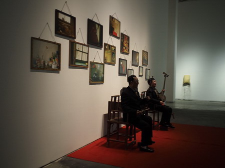 开幕式现场陕北评弹表演,弹唱《信天游》。