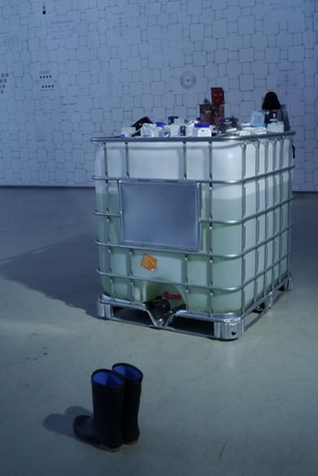 Eric Steinbrecher的《世界海洋》混合媒材装置,一千升的水箱装满了来自世界各大海洋的盐。