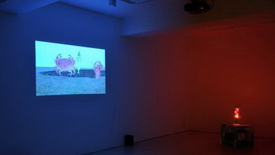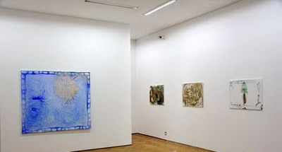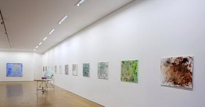 露西·斯坦(Lucy Stein)的绘画作品被布置在上层展厅的四周。艺术家用朴实的绿色和柔和的蓝色画出了最基本的有机形态,并迅速过渡到看起来泥泞不堪的更加本能的排泄物,似乎是指甲在画布上涂抹而形成的。此外有的画面中还出现了女性的裸体形象,而露西·斯坦(Lucy Stein)的双手在这种混乱的创作中始终有迹可循,这为这些作品增添了一种焦躁感。夏娜·莫尔顿(Shana Moulton)雕塑化的影像装置作品在视觉上穿插于这些绘画之中,融合它们朴实与柔和的色调,形成了集反复无常与必要女性特质为一体的混合作品。