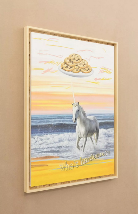 ▲ 苗颖《模拟信号艺术 - 谁是硬核?独角兽》,2018,布上油画带框 125 x 90 cm;图片致谢艺术家和没顶画廊