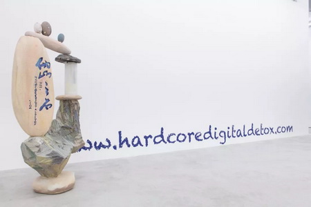 如果说十一月开幕的上海双年展“禹步”把我们的目光引向了历史的矛盾性,那么我们不妨把苗颖同期在没顶画廊呈现的新个展“硬核数据排毒”看作对这种矛盾性在当代互联网世界中的变体——即所谓的个人自由背后数据集权制度的操控——的一场不乏反讽的研习。作为当代网络艺术中的先锋人物,苗颖以她敏锐的视角捕捉中国英特网(或者说亲特网)语境中繁衍的独特文化创意和视觉策略,和网络生态中暗含的复杂性。艺术家此次在没顶画廊的个展“硬核数据排毒”是她为M+一系列数码委约项目创作的首件作品的线下呈现。与艺术家的上一个网站项目《亲特网+》(由纽约新美术馆委托》相比,“硬核数据排毒”在保留了她一贯的幽默和讽刺的同时,以主要来自中国和美国的独角兽科技公司在各自网络文化中的认知控制为切入点,通过效仿市场主导的生活方式营销策略这一形式,探讨防火墙内外的线上生活中所共同面临的瓶颈。
