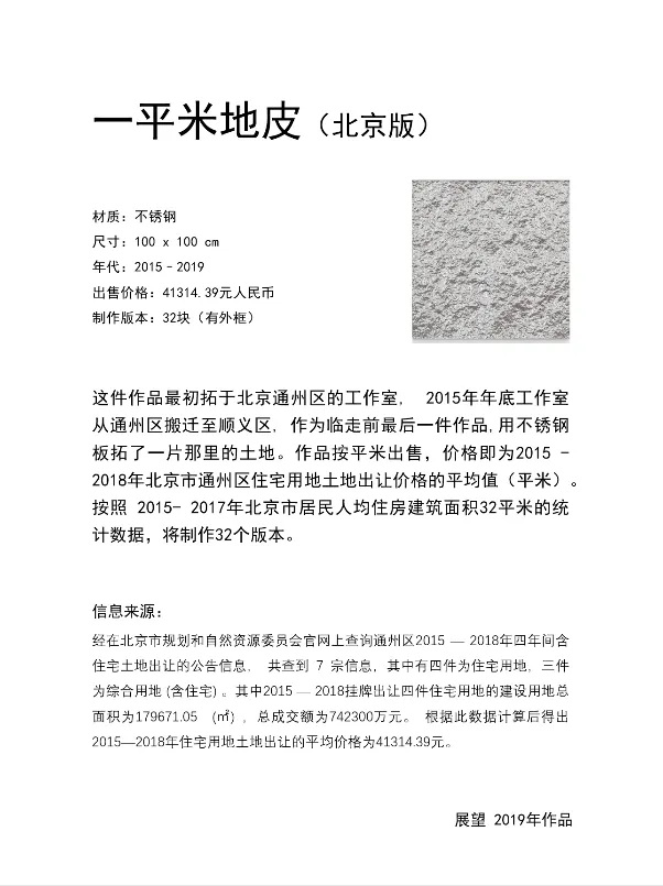 此画由十块240x120cm水泥板板材拼和而成,水泥面涂上白色腻子打磨平整,画好后在现场拼装成一个正方形木箱装在这个空间里,与空间本身的设计不发生直接碰触,展览也不举行开幕,不接触观众。画画当中有学生帮忙,画了一个星期。事实上,此画永远完成不了,因为在“不碰”的规则下永远都可以画下去,直到有机构收藏,但如果收藏者愿意按照这个规则继续画下去也是可以的,都是对“无限”的致敬。