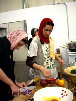 Agathe Snow and Anne Apparu making dinner for "Chop Shop," 2007