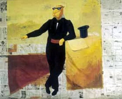 周铁海,《十年前》,(Zhou Tiehai, Ten Years Ago ),报纸,水粉,160 x 234cm,1989