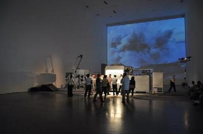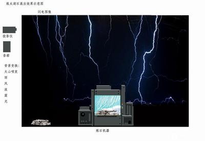 除此之外,现场感的另一个小缺陷,在于电子屏幕上的风雨雷电尽管猛烈,但着实并不具备太震撼的力量,事实上它带给观众最惊骇的感受的时间延续,只维持了极短时间。这当然受制于技术条件的限制。但是这个大背景一旦因为过于粗糙而虚伪化,那整个过程势必多少显得有些矫情。矫情是指,我们在这里本没有如此地惊惧惶恐,却非要表现得作瞠目结舌状。的确,人们都讨厌被愚弄,尤其是不够聪明的愚弄。但基于成品及现场感并非作品的关键所在,这些问题相对于作品整体而言,算是白璧微瑕而已。