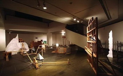 石青《植物共和国》 装置 绘画/聚氨酯泡沫/ 石膏/纸箱/木方/滤网水/ 泥板/木工夹子 2011年