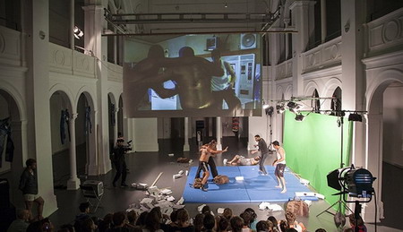 Maja Cule:我们是在柏林Tanzfabrik Uferstudios进行驻留时开始打造这个项目的,Tanzfabrik Uferstudios原本是一个很大的工厂建筑,后来被打造成了一系列专门进行当代舞蹈项目的表演空间。但是我们一直都不想做一件以舞蹈为基础的作品。我们期待一些更贴近现实生活的东西 ,尝试了各种与观众进行互动的形式,并且研究了卖座大片的镜头的制作。