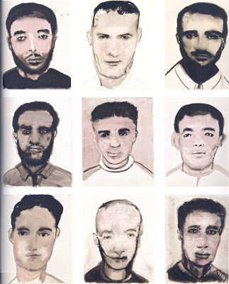 这个作品属于她的“死亡系列”,一系列的死者肖像,都来自媒体的死亡报道,有的是偷渡西班牙的非洲难民,有的是声名狼藉的罪犯、激进的恐怖分子、反恐士兵,还有刚刚死去的玛丽莲•梦露。那些形象也许我们都在电视里见过,比如那个“装在麻袋里的脑袋”,当我们看到这个系列的作品,一定会想到,她/他是一个妈妈,是一个爱侣,是一个父亲,一个朋友---没有任何提示“谁是侵略者?”、“谁更值得同情?”、“死于战争还是谋杀?”。但是我们认识作者强大的悲悯和恳求,不带丝毫偏见的,审视着长眠之人,他们不再是个抽象的“他者”,而是同一个共同体中的同胞。