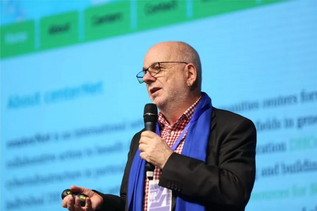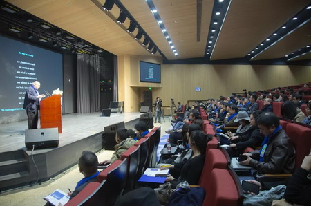 中央美术学院视觉艺术高精尖创新中心首席专家罗伊·阿斯科特(Roy Ascott)在开幕式上致辞,他说未来的科学会向哪个方向发展,艺术又会有哪些全新的形式,是此次大会着重交流研讨的议题: