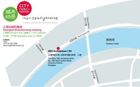 二零零九深圳香港城市建筑双城双年展将在上海举办一场头脑风暴会,届时双年展总策展人欧宁将介绍此次双年展的初步想法和场地调研结果,策展人侯唯唯会介绍一部分参展提案。会议对外公开,欢迎各位建筑师、建筑工作者、建筑评论家及其他感兴趣的朋友前来参加,为双年展提出新鲜、有见地的构想。