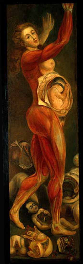 Jacques-Fabian Gautier d’Agoty, Dissection of a Pregnant Female Figure, Lateral View 1764–1765