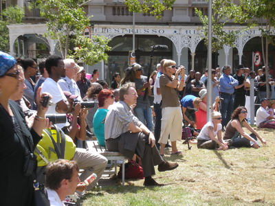 开普敦街头观看艺术家表演的观众
