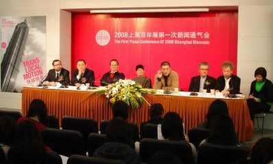 2008年第七届上海双年展在上海美术馆举行第一次新闻通气会。上海市文化广播影视管理局副局级巡视员毛时安、上海美术馆馆长方增先、中国美术家协会副主席、中国美术学院院长许江教授、上海美术馆执行馆长李磊、上海美术馆副馆长、上海双年展办公室主任张晴和策展团队、各媒体的记者出席了会议。