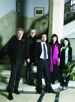 图为双年展策展团队,从左至右分别为:斯劳格、翰尼、张晴、项丽萍与李凝