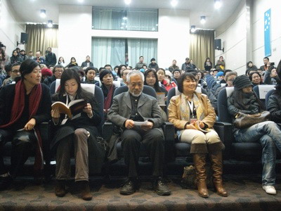 栗宪庭先生在开幕仪式上说:“谢谢大家! 我看来了这么多人非常高兴。其实,很多东西我都忘记了,但是我没有忘记的就是一颗感恩的心,感谢这么多人来参加这个影展。大家都知道,现在在中国啊,要做成一件事情非常不容易,正是因为这种不容易,所以需要大家的帮衬。我觉得只有帮衬才能做好一件事情,所以我感谢大家,我觉得真正好的、有意义的东西都是从民间做起来的,民间艺术的成长是因为每个活生生的人他就生活在民间,这种活生生的人在各种压力之下,政治压力,意识心态的压力下,各个生命才能展现其生命力,这种生命力就包括创造力、想象力,当然也包括协同力。从这个角度说,我觉得西方哲学过分地强调了个人的孤独,而忘记了同心同德,心心相惜也是人一种共同力量的来源。所以我觉得这三年的工作基本上走上了正轨,都和大家的帮助离不开,非常感谢……”