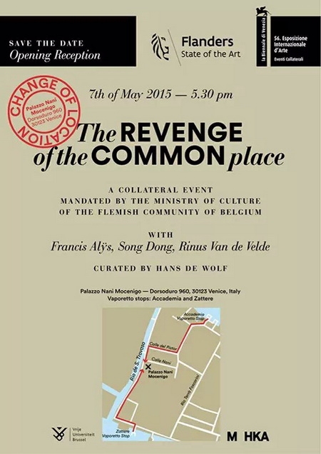 宋冬此次将同艺术家弗朗西斯·埃利斯(francis alys)和纳斯·范·德·维尔德(Rinus van de Velde)一同参加由比利时荷语区文化部(The Ministry of Culture of the Flemish Community of Belgium)举办的展览“Revenge of the Common Place”。展览将探讨艺术中原作与其复制品之间动态的关系。展览将于2015年5月7日在Palazzo Nani Mocenigo美术馆展出。