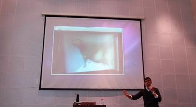 讲座过程中,林先生结合了PPT丰富的文图、精彩的视频方式,带领现场的观众感受了多媒体艺术的演变,以及身体为媒介在新媒体创作过程的变化,提供了一个很好的思考角度与提示。