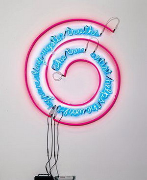 探索新路非常难,哪怕是美国年近七十的老将布鲁斯·瑙曼——他今年名为《拓扑花园》的作品,帮美国馆拿下了今年威尼斯金狮奖,这个作品整理回顾了艺术家瑙曼的雕塑、装置、多媒体等作品。瑙曼为此在威尼斯新创作了一件声音装置《日子》,观众经过两列白色的超薄扬声器,能够听到不同的声音念出星期一、星期二、星期三……“工作那段日子真是艰难,”瑙曼说,“我日复一日地琢磨要做什么,星期一过了,星期二又过了,然后我想:那好,就做件讲一星期里每一天的东西吧。”