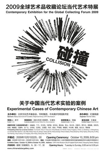 2009年十月,“全球艺术品收藏论坛”(包括闭门会议、公共论坛)与“碰撞——关于中国当代艺术实验的案例”这三位一体的活动将同时拉开帷幕。通过这次实验,旨在探索出中国当代艺术在与世界各国的交往中,存在的诸多可能性。从时间上看,中国当代艺术历程对这个世界和我们本身的影响显而易见。正是因为这样的原因,“全球艺术品收藏论坛”第一次走出西方文化中心——欧洲,于今年10月移址中国北京——在这样一个颇具实验意味的时间节点上,我们试图通过“碰撞”中的30个具有典型意义的艺术个案,来展示出这个占全球1/4人口国家的艺术家,是如何在一种不确定性中,明智地做出我们关于今天和明天的抉择。