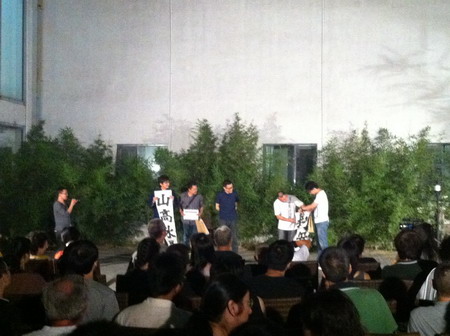 颁奖仪式后吴文光的草场地工作站的综合媒体表演(小剧场和纪录片结合形式)。