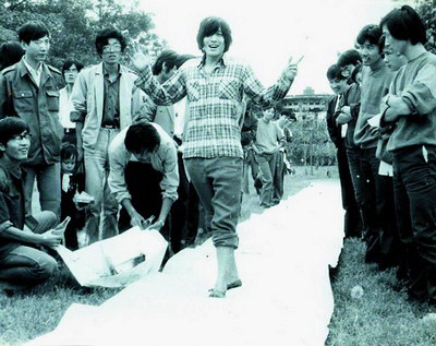 也就是在大家都在为建立自己的“思想”和“主义”忙得找不到头绪的时刻,“晒太阳”却让我们获得了一次超越的体验。在没有界线,也不受任何限制的完全开放状态下,所有热爱自由的人都可以在太阳下尽情地展现自己的思想和身姿,正如当我们回过头去追忆“晒太阳”的那段历史时,我们便会发现那是一次没有“理论”,没有“纲领”,更没有任何“主义”的艺术行动,唯一能够让我们回忆起来的只有当年印在《“晒太阳”通知》中的那句“每一个人都可以来,每一个人都是主人。”现在重新认识这十几个字,自然便会让我联想到博依斯的那句“人人都是艺术家”的名言,但在二十年以前,中国人似乎还并不知道有博依斯的存在。其实,这种观念上的不谋而合,只是自然意志对人的生命的一种特殊关怀。当我们身陷在纷乱的社会现实中不能自拔的时候,这种“关怀”便自然而然地呈现在了我们这些血气方刚的年轻人面前。因此,我们完全可以将“晒太阳”当成是自然意志在中国青年艺术家群体中显现出来的一个特殊案例。从这个意义上说,1986、87年的“晒太阳”,也完全可以称得上是一次艺术家群体在超越了一般文化和艺术经验之后,对自由进行的一次有意无意的追求。也就是在那一天,大家忘却了一切文化的纷争和隔阂,也就在那一时刻,艺术家们都感受到了一种生命的高峰体验。