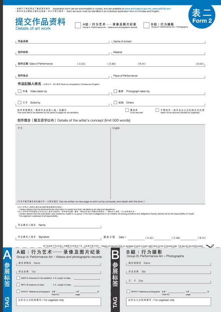 4) 参展者作品可以选择提交“A组:行为艺术─录像及图片纪录”或“B组:行为摄影”。