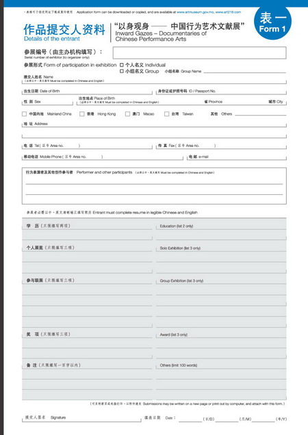 IV. 提交作品表格必须以中、英文清晰端正填写。