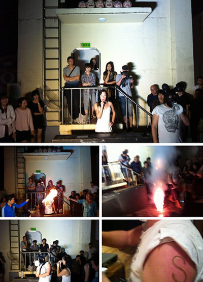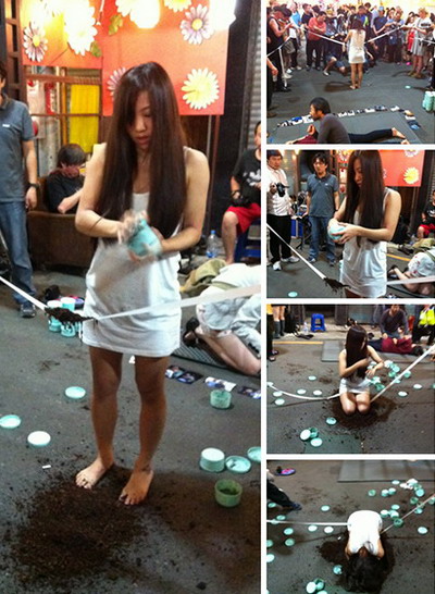 韩国年轻女行为艺术家。