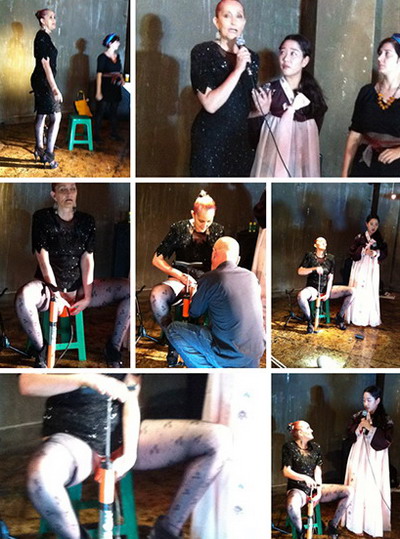 来自墨西哥的艺术家Rocio Bolive用私处插入汽筒附上麦克风与一本地女孩唱了一曲日军侵韩的歌。全场一片寂静,只听到韩歌的悠扬伴着气流在空谷回旋发出迭荡之音,其实这很挑衅!我问一位观众对此有何感想,他说并不太舒服,因为这是严肃的歌,不过也没太在意,他们对艺术很宽容。