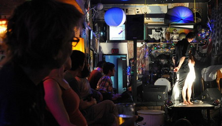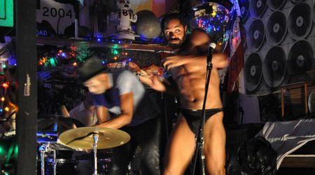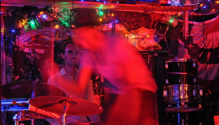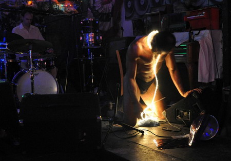 7月6日——The Georges的表演一半是行为艺术,一半是现场演出,因为他们是获OBIE奖剧团Hoi Polloi的分支。这个团体描述他们做的事情是“前卫地即兴”,包括Alec Duffy,作曲家Steven Leffue,演员Jason Quarles和Julian Rozzell。那天晚上的表演是从大声的朗读开始,逐渐变化,走下坡,直到土崩瓦解成为一塌糊涂的尖叫,我想这应该是有意为之的。