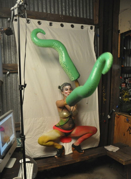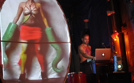 A detail of La Pocha Nostra’s “Corpo Insurrecto: Psycho-Magic Actions for A World Gone Wrong” (2013) performance on Friday, July 5 at Grace Exhibition Space.