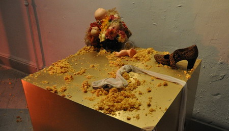 7月6日——一个被遮住眼睛身着白色的女人站在舞台上,他溜达到观众的对面,同时另一个男人高声朗读一个文本。Henry最终回到了舞台上,摘掉了女人的眼罩,脱掉她的衣服,最后用一块黑布将她遮住。