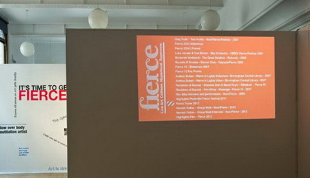 这个展览被定位为对一个更大型的档案项目的试探性的开始,该项目将覆盖整个Fierce艺术节15年的历史。它展示了一系列艺术节宣传册,宣传素材DVD,一个录音和艺术节过往的令人难忘的句子及引发争议的媒体报道所组成的回忆墙。