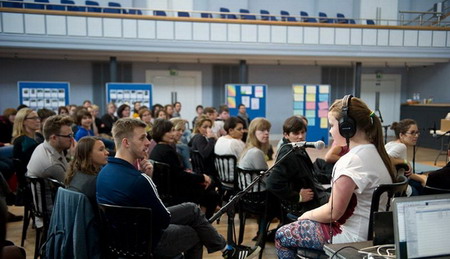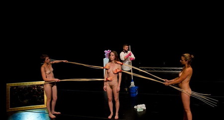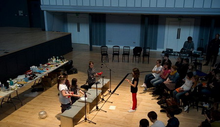 在旧市政厅的周围放置了许多板子,上面描绘了了无数的灾难,人与自然的毁灭性行为。将孩童与这些灾难联系在一起似乎是无可想象的,然而他们确实就是在我们无可作为时将来会发展出解决方案的那一群人。作为观众等待着,一组四个孩子(年龄在10和12之间)进入房间跟指导者一起玩儿一个贴标签的游戏。他们在屏幕和舞台之间赛跑,大喊着“着火了!”“发大水了!”直到一个赢家出现。通过这个在8月和9月进行的表演工作坊,在孩子与指导者之间,发展、测试并协商出了脚本和设置,探索了不可避免的灾难和当我们面临它时必要的应变能力。