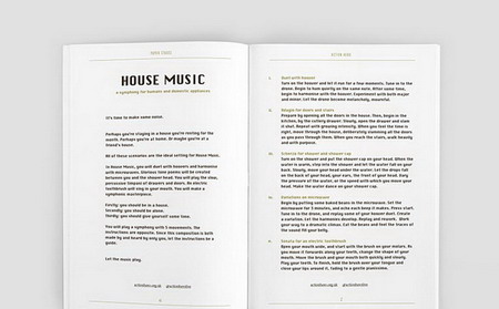 这本印刷品由Forest Fringe出版,它是“伪装成一本书的艺术节”,汇集了来自18位艺术家对于个人在日常空间中表演的指导,邀请人们重新认知自己的周围的环境: