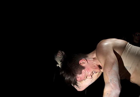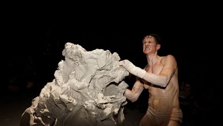 这其间的20分钟,不知何故,既发自肺腑又虚无缥缈。Heather Cassils,一位变性的私人教练,不断地在黑暗之中无情地捶打、揉捏这粘土。观众们都无法直接看到艺术家,只能通过一个摄影师,在他扣动快门的瞬间,由之强烈的闪光灯而戏剧性地映照出一系列视网膜上的图像。