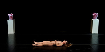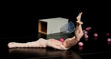 在“Becoming an Image(成为图像)”开始之前,观众们都站着,保持着一定的距离,围绕着一个真人大小的未经烧制的粘土方碑。当时的气氛虽说不是宗教崇拜感的,却肯定是安静并仪式化的。当表演结束后,聚光灯再次切回来,上面的指痕和手印更深了,同时对其造成了不可弥补的损坏,整个结构都被打击得靠近了地面。而观众们围成了那个圈也随之破裂了,每个人都在凑近,想看个仔细。