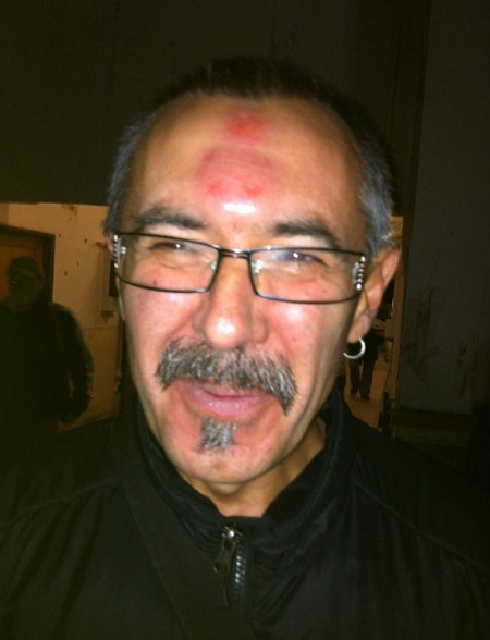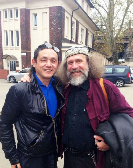这时我看到我的朋友Dariusz Fodczuk向我走来,我们拥抱,他从波兰来的,我向韩啸介绍他去年请我去他的家乡参加行为艺术节,我们都知道明年彼此还要在台湾再见面,同时参加叶子启的在7月的行为艺术节。随后他告诉我可以到外面看捷克艺术家Martin的表演。