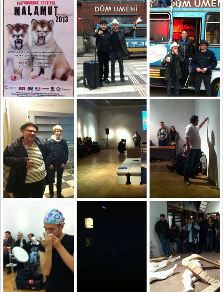 31日我起了个早,按约好的去敲德国艺术家Klaus Richter的房门,我们示意在出口处见面,一起去吃了早饭,原来我们去过的那家附近唯一的小店是一家医院的附属,这里的咖啡非常糟糕。Klaus是来自德国多塞尔多夫,原也毕业于多塞尔多夫美术学院,他当了许多年艺术家,以做装置艺术为主,几年前有人叫他在卫星城的一个小美术馆当策展人,他很满意这个工作,他可以以自己的意愿办展覧,做节目。在与Klaus聊天中得知他是Jiri的老朋友,曾几次来过这个行为艺术节,他说如果你了解Jiri就会知道这个艺术节为啥这样自由和松散了。后来他在电脑中让我看到一些Jiri的行为作品资料,还有本地艺术学院的学生们在一个行为艺术节上复制他年轻时候的行为作品中的形象,许多硬汉和披盔戴甲的形象,原来Jiri是本地一个有着火暴名气的行为艺术家,他是个传奇人物。