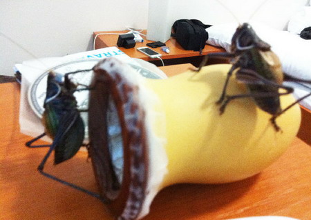 韩啸带了俩个小伙伴——两只蝈蝈一起东征