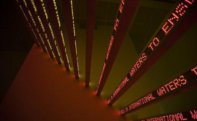 刚刚在纽约惠特尼博物馆开幕的美国观念艺术家珍妮霍尔泽“保卫,保卫”多媒体展,强调了有关死刑,酷刑,战争和人类的残忍的主题。展览至5月31日。