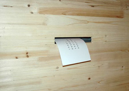 陈甜甜作品《1米×1米×1米/标准/箴言》 中国神奇报道:一个木箱子,前端有感应器,人走过会有一张纸从里面出来,上面印有作者写的一些话。