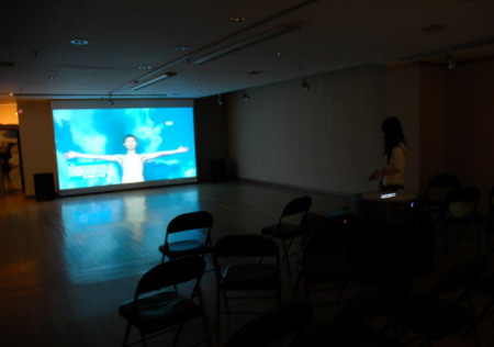 互动内容:观众互动前,影像中的每个人在相对黑暗的空间里,状态比较放松,当观众用手电筒照向画面时,被照到的人,会做出不同的肢体反应。