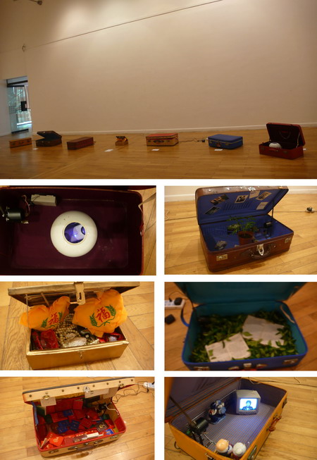 曾铎作品《嫁箱》 作者的话:通过各种方式收集各个已婚女人的嫁妆箱子,并邀请在她们各自的箱子里面用任何物质材料表达她们对理想生活的乌托邦想象。皆为没有美术史经验的人。将她们的箱子安装动力,做成可自动闭合停止的装置。一并展出。补充(将其收集过程和参与者的制作想法的证明手稿展出)。