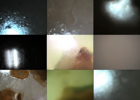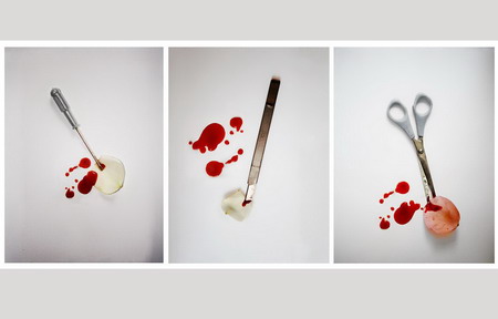 魏盼盼 《源》水与面粉之间本来有种相互融和的暧昧关系,水是生命之源,面是大多数人的主食,两者维持了生命的存在,命运在占卜里有时候是通过手纹来体现的,与生命达成一定的关系。从作品的形象上,水滴的动感与面粉被动结合,水滴与面粉和手纹的关系在叙事上违反了常规,水滴改变着面粉的属性,毁灭着手纹。