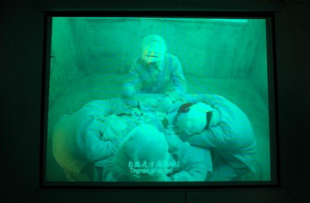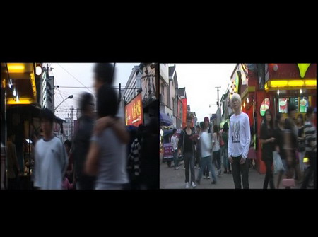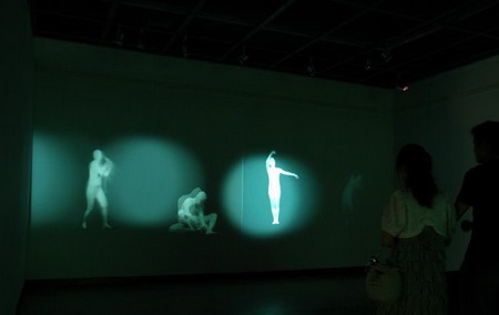 王丹作品《无题》 作者的话:前期收集各种影像资料,从中选取自己认为合适的画面。自己拍了很多固定场景的影像资料。一人(男性)现场裸体表演,DV录下过程,后期进行口抠像。用软件把以上影像合成,剪辑。后期反复调整,给影像配音。