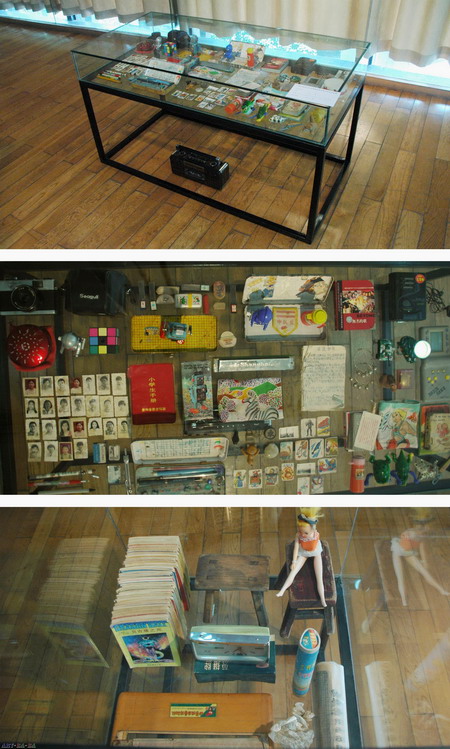 于雪作品《温室》,收集了同龄人的一些过时的物品展出,并且有一个老式录音机播放收集过程的声音。
