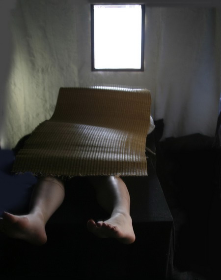 王静妮 《窄床》(表演+装置+影像) 在一个盒子里。躺着一个身体。这个身体是谁的?