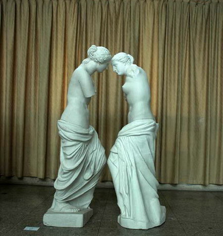 彭检作品 《无题》 两个维纳斯的石膏像深情对望。