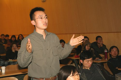 我们先看到这儿,我接着刚才你问的那个问题。就是怎么说呢?就是从我,应该是说从我自己的经历来说,就是说每一次转变的话其实都是从头开始,从零开始的。因为你比如说我做摄影展览的时候,你没法想象我做完那个展览我很快的就有了几千块钱。然后做三维作品的时候,那时候只有一台家用电脑嘛,其实我可能也没多少钱,租完工作室以后,然后好像是2004年的时候就两万块钱,然后冬天的时候,工作室里暖气都没有,天寒地冻的,2004年的时候,现在已经不可想象就是说在那种工作室里面,没有暖气这个冬天怎么过的。然后甚至现在也一样,现在我今天来之前,我还在工作室里就是非常头疼,可能在那里非常急躁,发了一通火,因为我们下一个计划的话,可能我们整个实现的话也是处于这个情况,可能也会把所有的东西全部投进去,但你不知道最后的结果是什么样。所以在这种情况下,我跟你们的处境是完全一样的,因为你比我还好在一个什么地方呢?你好于,你做一个东西可能你还不害怕失败,但是我非常怕,我非常怕,因为我怕这个失败以后,它跟整个的工作室根本就调不起来,那就是我一次失败的话都不允许。但是你又不一定能真正做到这一点,谁怎么可能说你每件作品都一定是成功的,这是不可能的。所以我现在唯一的做法就是我是几个项目可能在同时进行,但是这个压力就更大,你如果几个项目同时做的话,你无论从精力、财力,还是能力各方面都是一个巨大的考验。